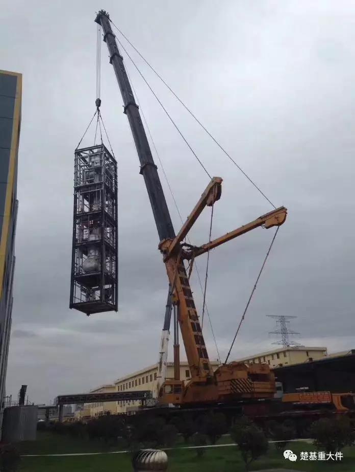 4900mm×4100mm×22000mm,即是精餾塔高度為22m,車(chē)間圍墻高度為16m,22m+16m=38m,既是精餾塔需吊高38m以上才可以轉(zhuǎn)臂,精餾塔寬度為4.1m,長(zhǎng)度為4.9m。